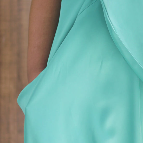 Crafted from luxurious Duchess Satin, the Anisah Jumpsuit boasts a relaxed, wide-leg fit that drapes beautifully. Its elegant draped neckline and tie-waist detail create a flattering silhouette, while the batwing sleeves add a touch of contemporary flair and comfortable movement. The rich classic black hue ensures timeless appeal.
