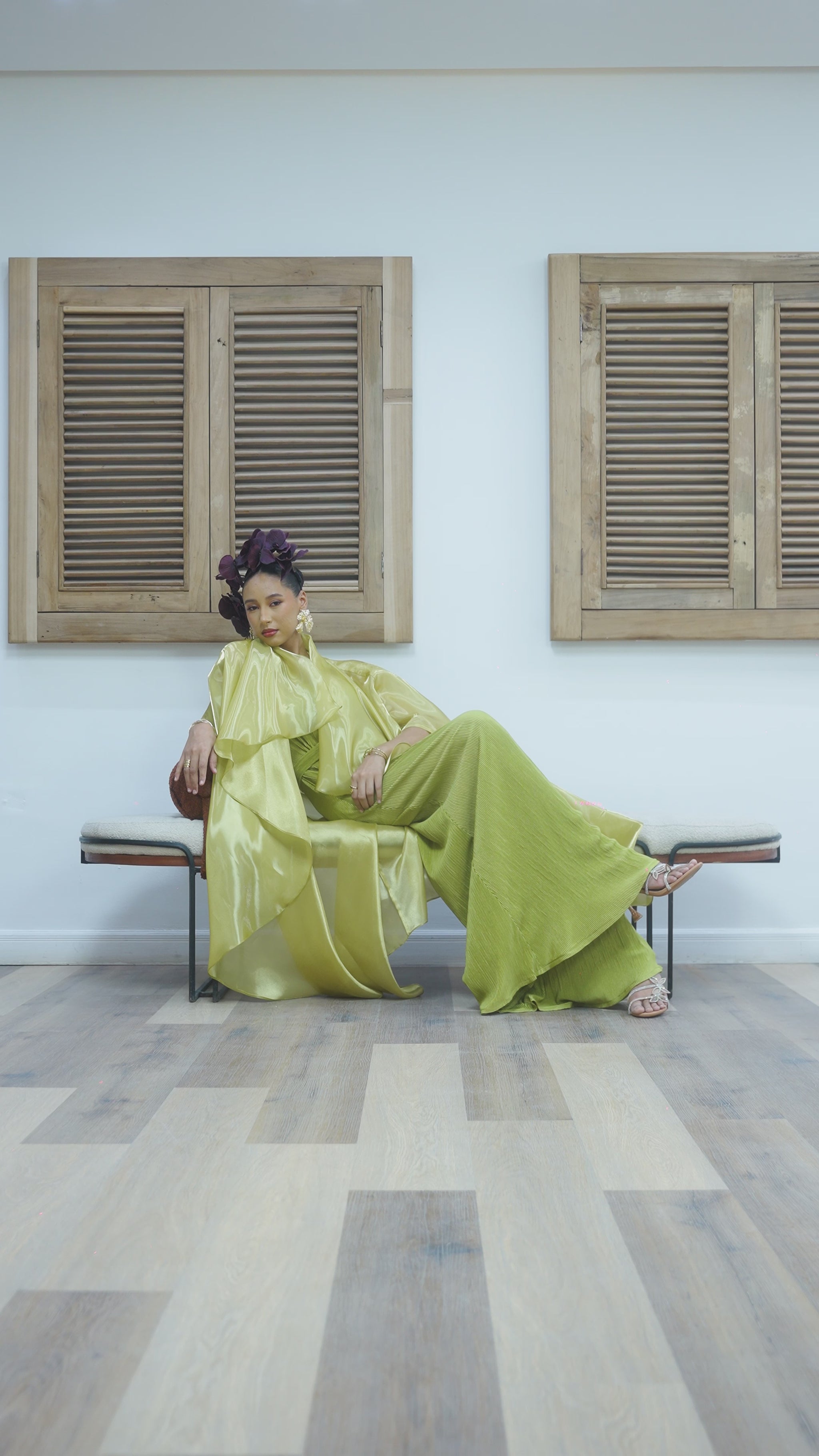 Step into radiant sophistication with the Saeeda Version 2 Set, an exquisite two-piece ensemble designed to captivate at any party, event, or wedding. This stunning set features a gracefully flowing kimono and a perfectly coordinated jumpsuit, crafted from a luxurious blend of plisse and organdi fabrics.