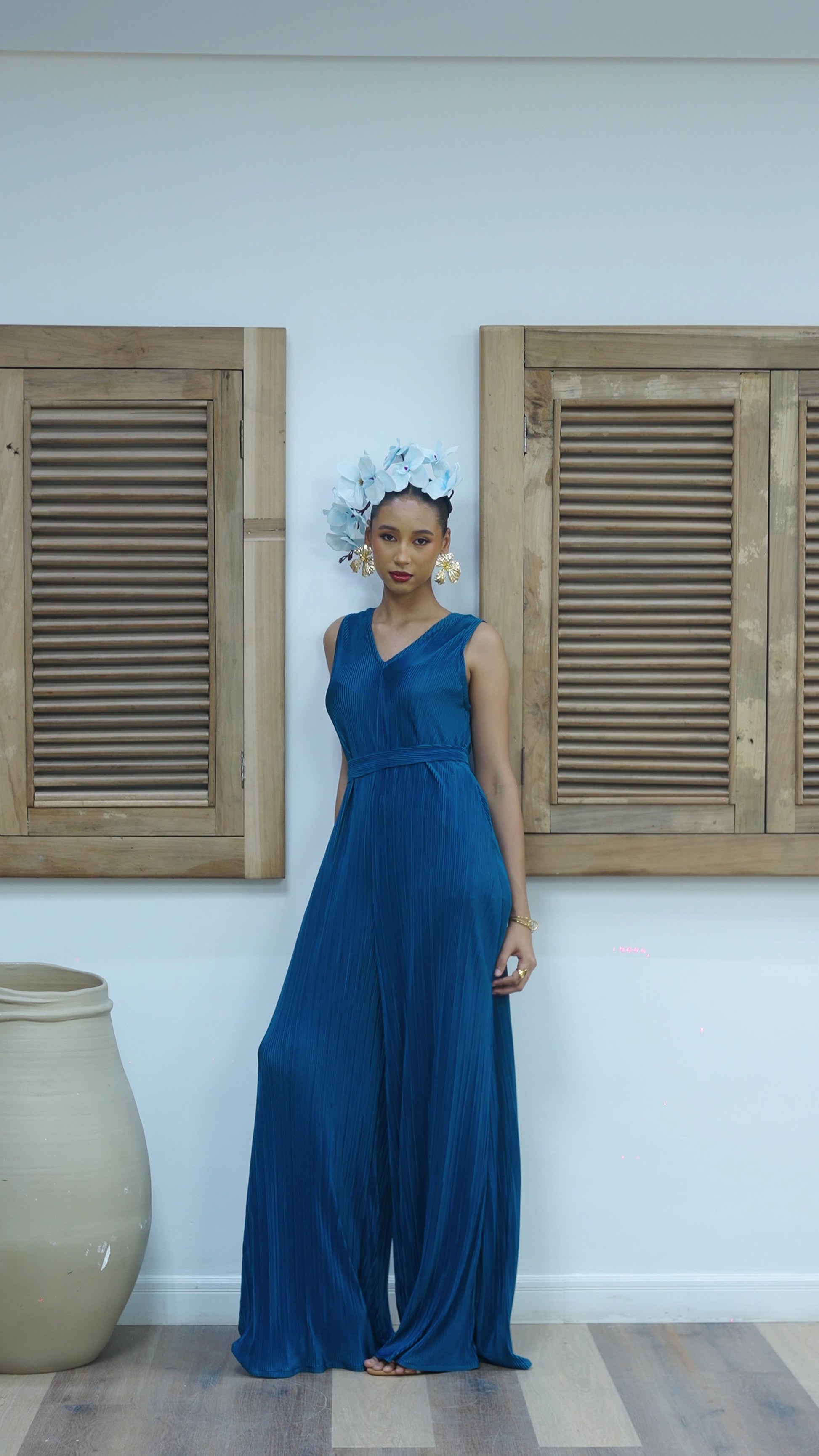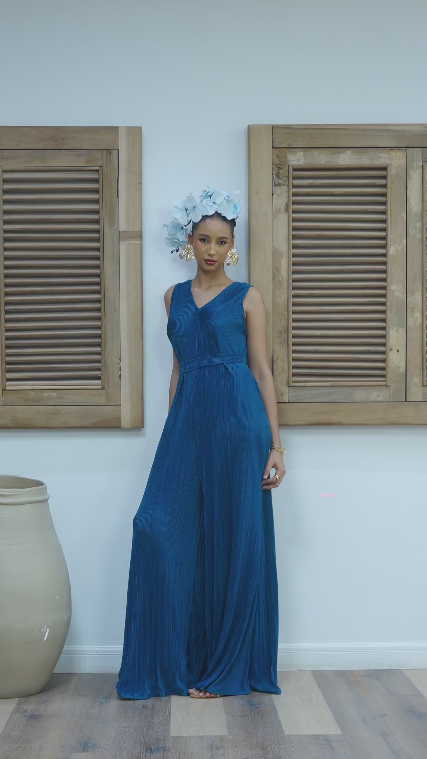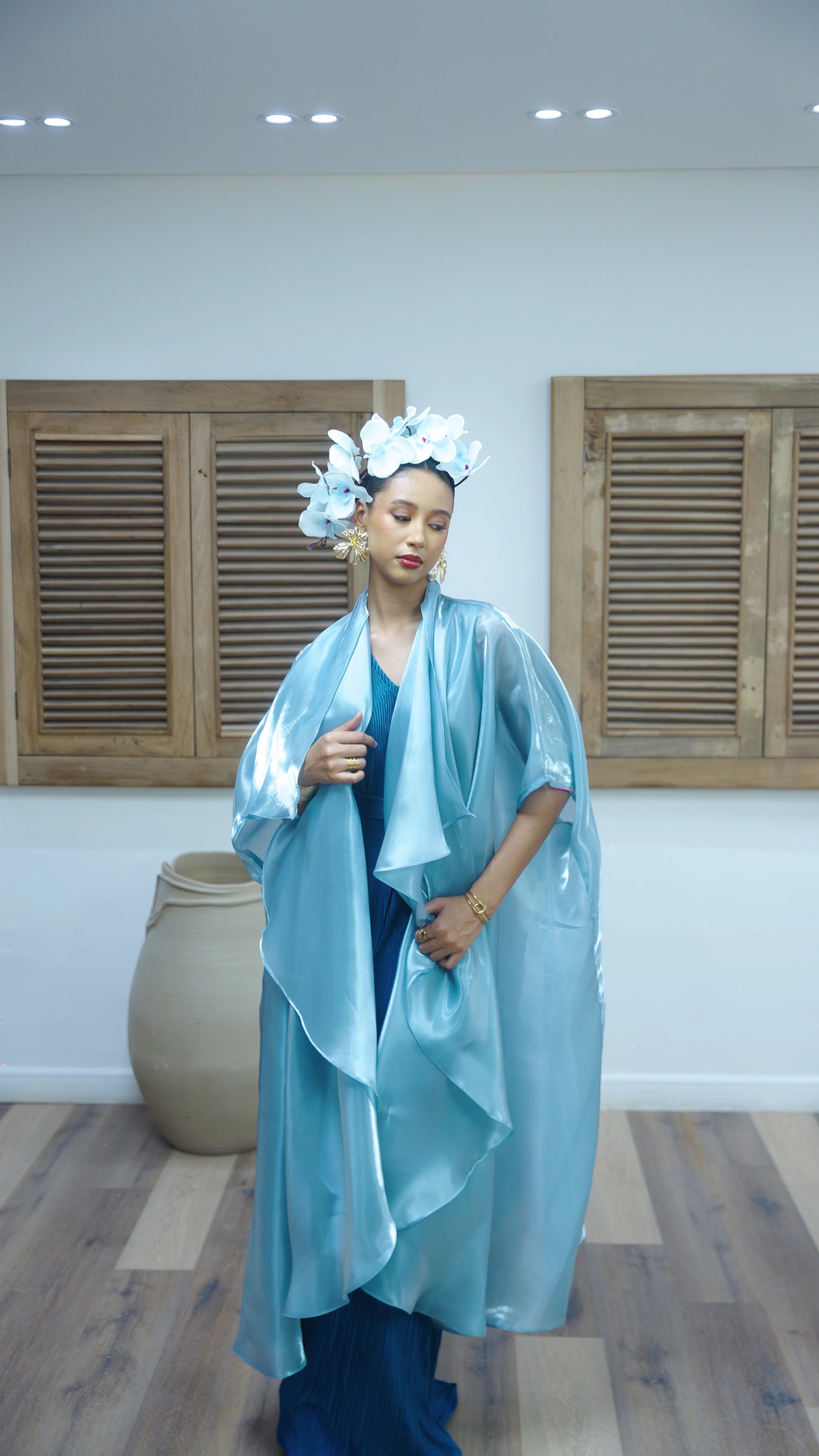 Step into radiant sophistication with the Saeeda Version 2 Set, an exquisite two-piece ensemble designed to captivate at any party, event, or wedding. This stunning set features a gracefully flowing kimono and a perfectly coordinated jumpsuit, crafted from a luxurious blend of plisse and organdi fabrics.